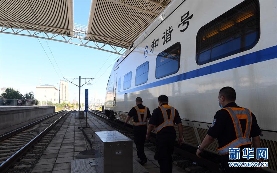 8月12日,長春火車站客運車間上水班組趕往下一個作業站臺。新華社記者 林宏 攝
