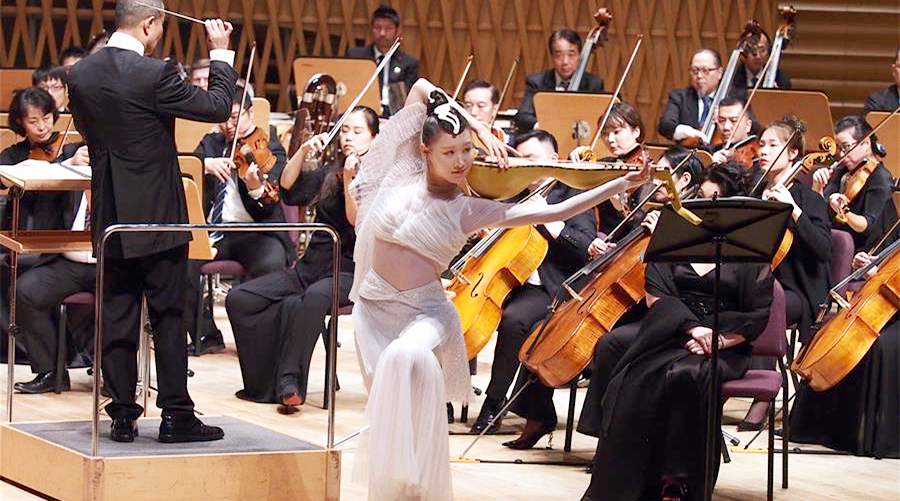 7月29日晚,演員在2020上海夏季音樂節閉幕音樂會上表演。閉幕音樂會上演出了作曲家譚盾創作并指揮的《敦煌·慈悲頌》。