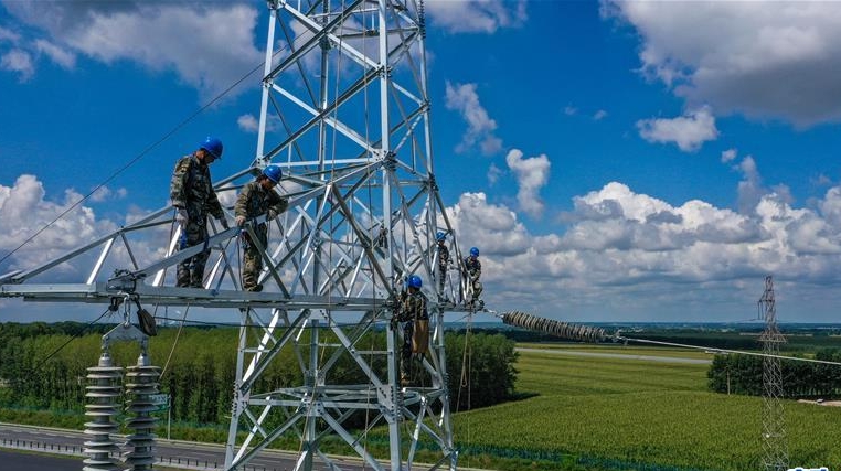 吉林省長春市連續多日出現高溫天氣,國網長春供電公司輸電運檢中心的送電工們每天清晨開始作業,不畏烈日“烤”驗,堅守工作崗位,確保工程按計劃完成。