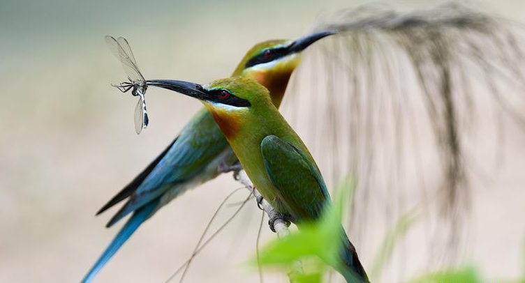 近日,不少栗喉蜂虎來到海南省海口市筑巢繁殖,據海口畓榃濕地研究所工作人員統計,目前來到海口的栗喉蜂虎已有近200只。