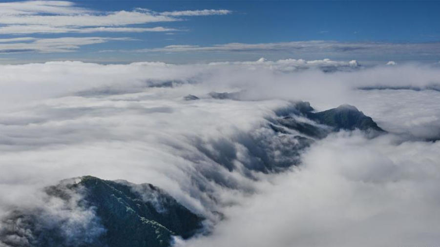 6月10日拍攝的漢中市南鄭區龍頭山景區的云海景觀(無人機照片)。