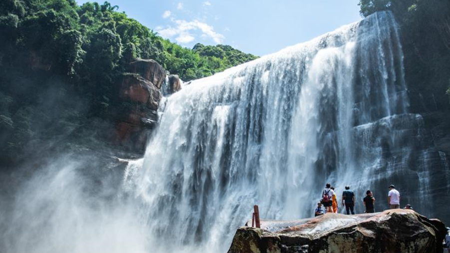 6月15日,游客在赤水大瀑布景區觀光游玩。