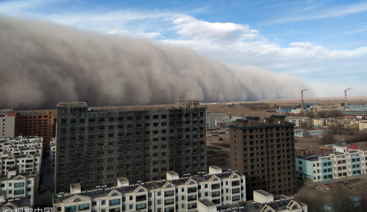 甘肅張掖沙塵暴來襲 “沙墻”高達上百米
