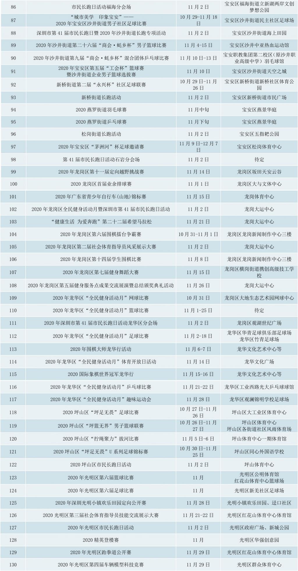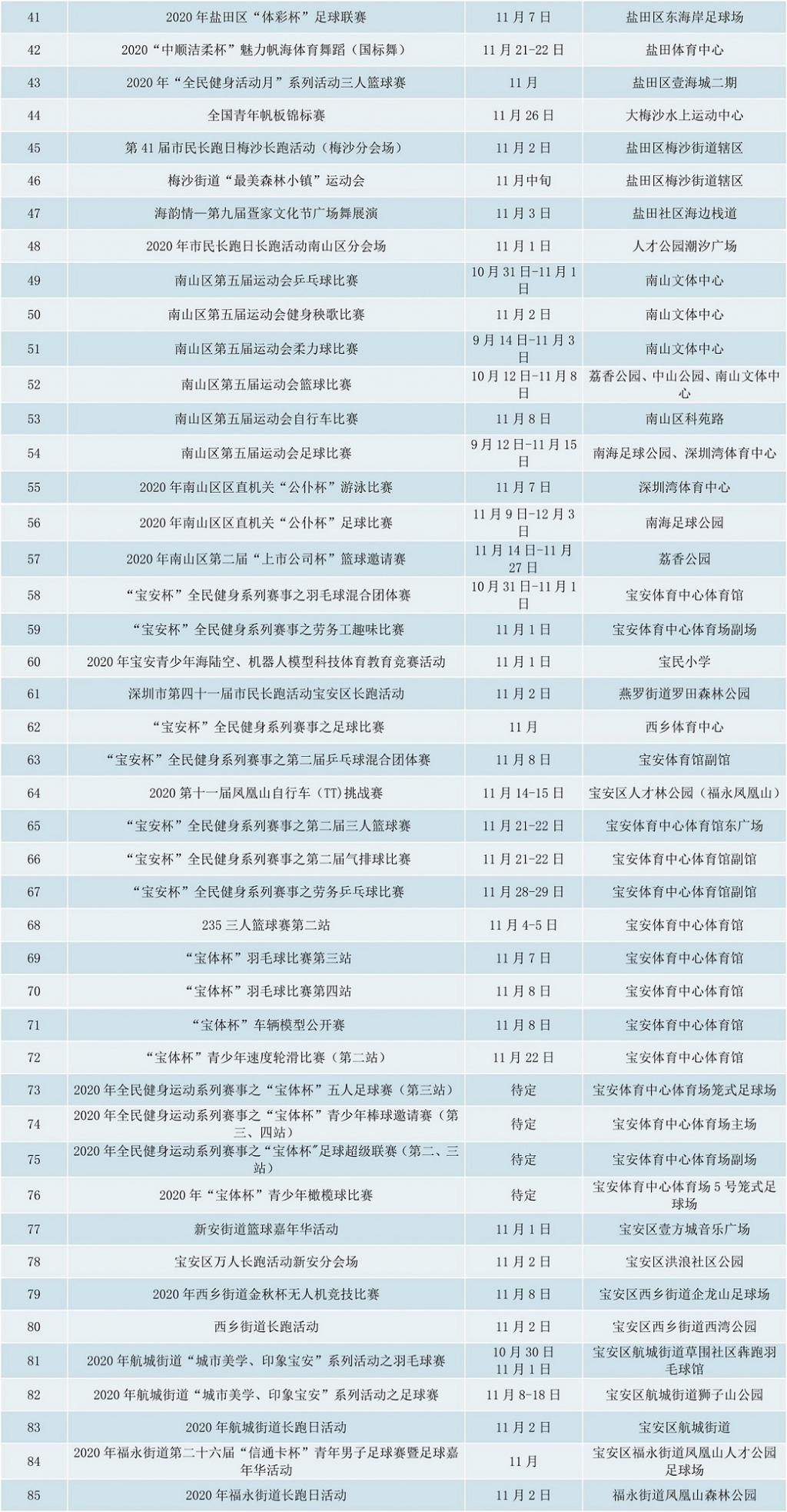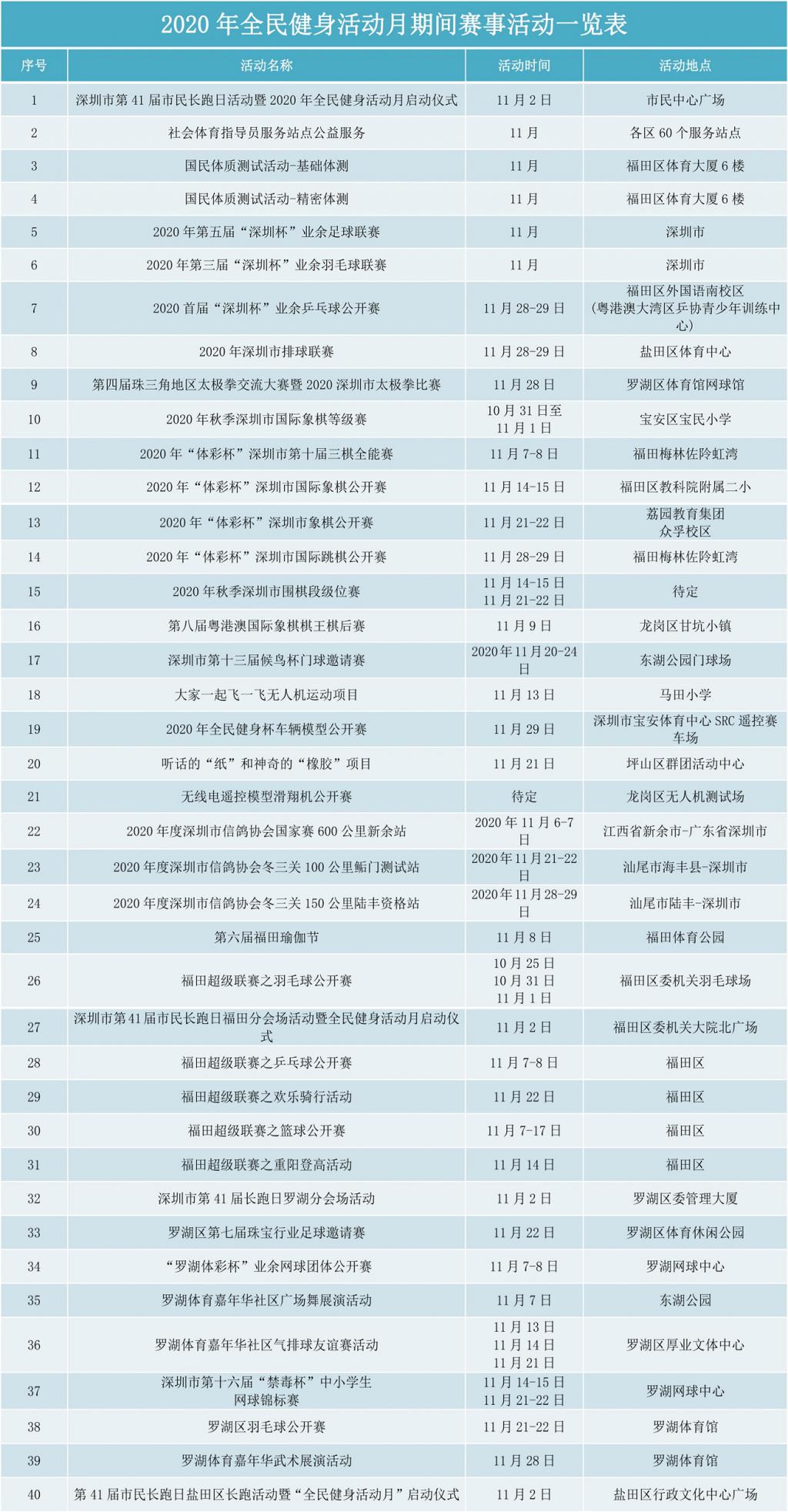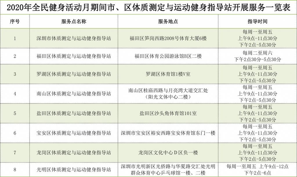 2020深圳全民健身活動月社會體育指導員服務點表: