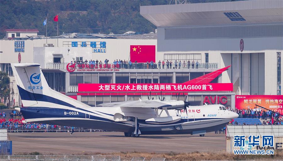 2000多年前莊子的暢想今天成為現實。12月24日上午9時39分許,藍白涂裝的大型水陸兩棲飛機——“鯤龍”AG600從珠海金灣機場啟動,滑行,一飛沖天。十年磨礪,運20、C919、AG600,中國大飛機“三兄弟”終于藍天聚首。東方航空大國正向航空強國全力沖刺。 新華社記者 劉大偉 攝