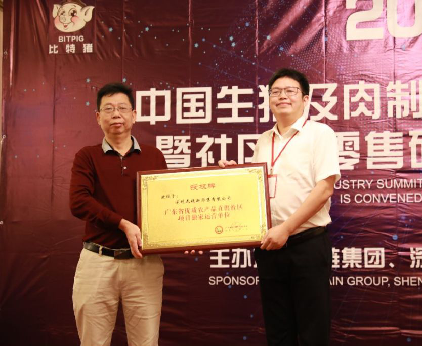 龍鏈集團董事局主席、川豬集團董事長、深圳龍鏈新零售有限公司董事長夏可,上臺接受了這項全廣東省獨家的授權牌,并發(fā)表感言:這既是廣東省委、省政府對深圳龍鏈新零售有限公司以區(qū)塊鏈、人工智能、物聯(lián)網等領域的高新科技,打造形成了生豬及肉制品等高品質“菜籃子工程”系列產品的規(guī)模化、專業(yè)化產供銷及商業(yè)平臺服務“一條龍”的肯定,也是一種鞭策——鞭策龍鏈人將自創(chuàng)的“比特豬”品牌穩(wěn)固為中國高端健康食品結合社區(qū)新零售領域的第一品牌,并不斷推動市民能夠以更便捷的方式與更良好的消費體驗,獲得高品質的放心食品。