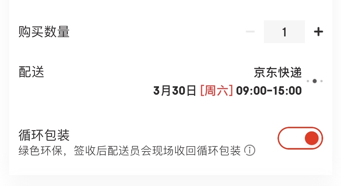 當下單頁面出現“循環包裝”的選擇項時,就說明該商品支持青流箱配送。只要用戶進行選擇,即可參與到環保行動中,減少一次性包裝使用,以點滴行為助力綠色可持續發展事業!目前,該活動涉及的商品種類數量達數萬個,涵蓋美妝、食品、手機、網絡配件、數碼配件、辦公用品等。
