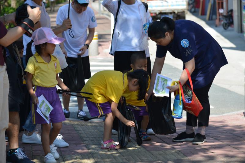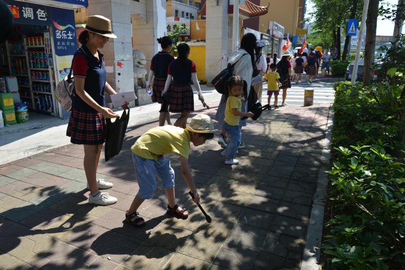 上午9點多,慈善小天使和志愿者們,從橫崗華明星幼兒園開始,沿著華西村和志健廣場等橫崗片區,一路清撿道路垃圾和與路人合影宣導,向過往市民分發“垃圾不落地”資料,宣傳環保知識。特別支持的市民,小天使們派發了棒棒糖這一他們最好的感謝禮物。