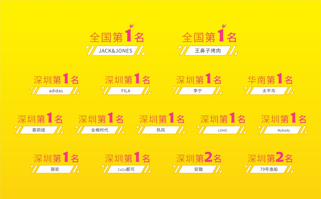 開業期間,壹方天地B區與已開業的A區、E區聯動,舉辦了一系列活動,獲得開業活動三天客流量突破69.3萬人次,銷售額超5000萬的佳績。開業期間,品牌商戶的經營業績也極為亮眼,NIKE、WESTLINK、YISHION、SANFU、79號漁船等多個品牌銷售額位居深圳乃至全國前列。其中,adidas、FILA、李寧、太平鳥、歌莉婭、全棉時代、熱風等品牌勇奪深圳第一,JACK&JONES和王鼻子烤肉更是獲得全國第一的好成績。