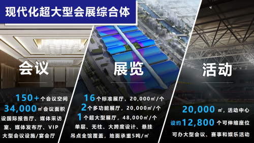 規模宏大、國際標準的展覽設施、近100多個不同類型的會議空間、2萬平米的活動中心、完善的各類餐飲設施、商業、辦公、酒店、公寓及會展公園多功能于一體的復合業態……在這里,一個嶄新的會展集聚區和綜合體正在慢慢形成,舉世矚目。深圳國際會展中心將打造“展覽、會議、文娛、賽事、餐飲”五項全能的世界級會展標桿。