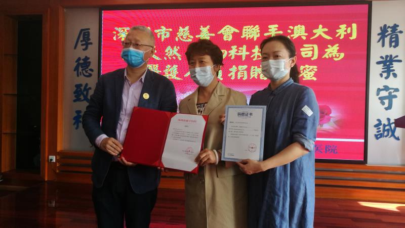 深圳市康寧醫院黨委書記王建紅,深圳市慈善會副秘書長董昕,澳大利亞天然生物科技公司駐中國辦事處代表全波,深圳市康寧醫院黨委委員、黨辦主任工會副主席陳靜,深圳市康寧醫院工會女工委主任劉雪琴,深圳市慈善會社會幫扶部部長肖志輝等參加捐贈儀式。