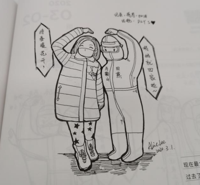 這本書由中國國際廣播出版社出版,共288副原創(chuàng)手繪,黎婧用親身經歷記錄了519位“暖心大白”在67天里抗擊新冠病毒的真實故事,并拍攝59段日記視頻,每一段文字都記錄下白衣天使那無私無畏、頑強拼搏的人格魅力;每一幅畫,都再現了大愛無疆的醫(yī)護人員,對生命的敬畏、對病人無微不至的關愛;每一段視頻,都讓珍貴的瞬間成為了永恒。