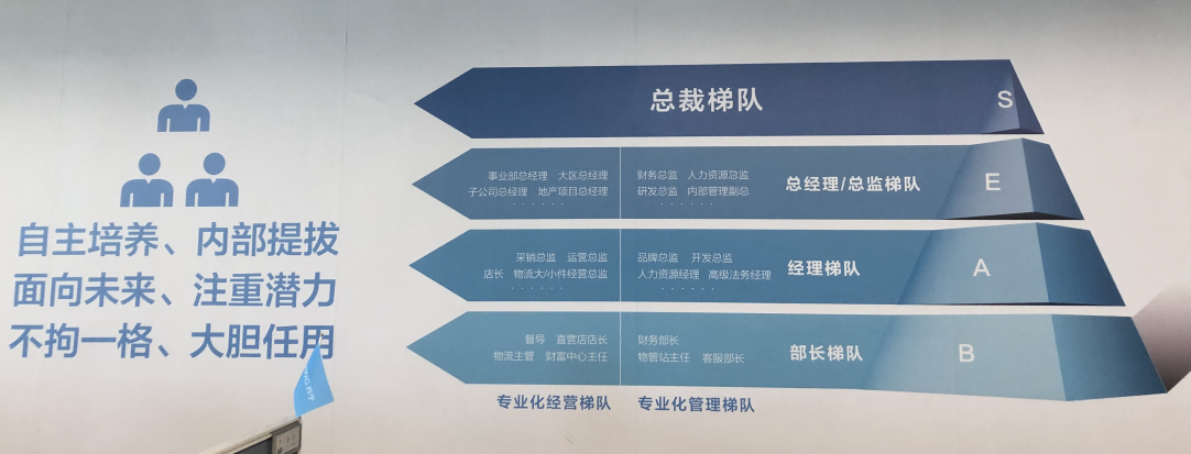 蘇寧主要通過1200校招工程進(jìn)行人才梯隊(duì)培養(yǎng),將人才團(tuán)隊(duì)劃分為B梯隊(duì)(部長梯隊(duì))、A梯隊(duì)(經(jīng)理梯隊(duì))、E梯隊(duì)(總經(jīng)理/總監(jiān)梯隊(duì))、S梯隊(duì)(總裁梯隊(duì)),逐層選拔培養(yǎng),在潤物細(xì)無聲中形成了組織的人才梯隊(duì)。