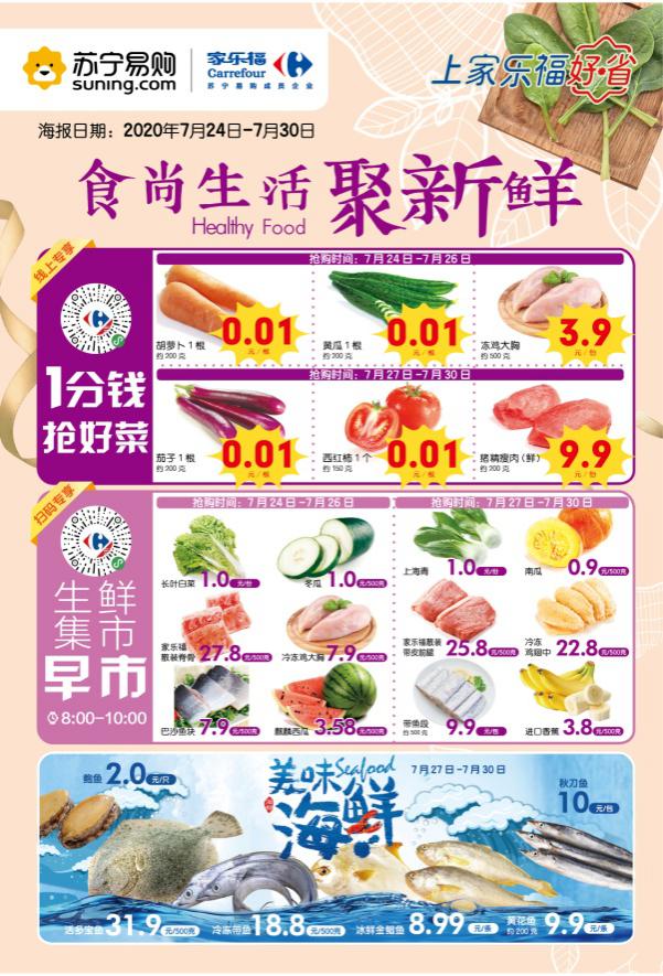 見圳客戶端·深圳新聞網2020年7月24日訊 為慶祝進入中國市場25周年,家樂福為線上用戶帶來專屬福利—“1分錢每天搶好菜”。即日起,消費者只需支付1分錢,即可輕松為全家帶回一道健康好菜,輕松享受便捷的品質消費。