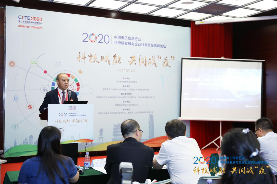 見圳客戶端·深圳新聞網2020年8月18日訊 近日,中國電子信息行業2020可持續發展與企業社會責任高峰論壇在深圳會展中心成功舉行。本次論壇由中國電子信息博覽會組委會主辦,中國電子工業標準化技術協會、中國電子技術標準化研究院承辦,中國電子工業標準化技術協會社會責任工作委員會和《可持續發展經濟導刊》雜志社聯合承辦,行業內領先企業積極參與,以“科技賦能共同戰‘疫’”為主題,共同交流分享電子信息行業企業抗擊新冠肺炎疫情的典型經驗和做法。