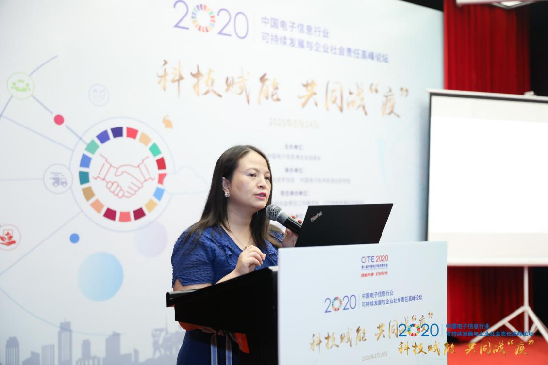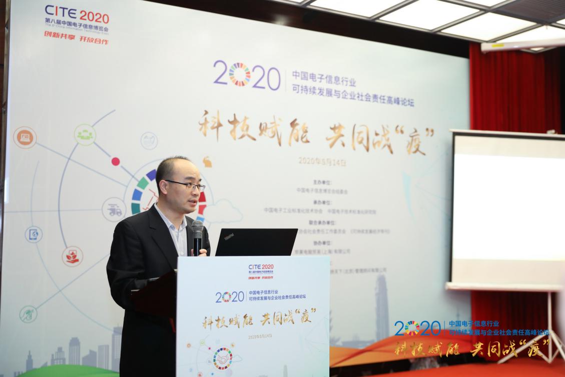 工業和信息化部產業政策與法規司綜合處處長徐華在致辭中表示:面對新型冠狀病毒肺炎疫情的洶涌來襲,電子信息行業企業積極承擔社會責任,構筑起了戰“疫”堅固防線,充分發揮自身專業優勢,運用信息技術能力,為抗擊疫情、復工復產做出了積極貢獻。產業政策與法規司作為工業和信息化部負責推動企業社會責任建設的主管司局,為深入貫徹落實黨中央國務院關于企業社會責任工作的要求,進一步加強新時代工業通訊業企業社會責任的建設,2020年,我們積極推進《關于推動工業通信業企業社會責任指導意見》的研究與出臺,探索建立企業社會責任意識和能力提升機制,推動企業社會責任培訓和宣傳交流工作。同時,通過搭建企業社會責任公共服務平臺,為宣傳企業社會責任政策和為企業開展社會責任信息披露及溝通交流提供服務。