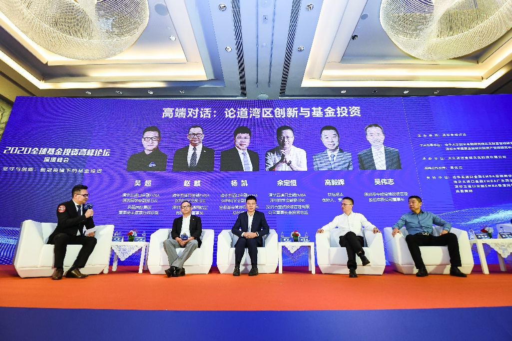 清華五道口金融EMBA深圳同學會秘書長、深圳市東部通用航空有限公司董事長趙麒,清華五道口金融EMBA深圳同學會副秘書長、寶盈基金管理有限公司總經理楊凱,清華五道口金融EMBA深圳同學會副秘書長、深圳市翼虎投資管理有限公司董事長兼投資總監余定恒,鈦信資本創始人、董事長高毅輝,深圳市中歐瑞博投資管理股份有限公司董事長吳偉志出席峰會并圍繞“論道灣區創新與基金投資”話題進行了深入交流探討,本環節由清華五道口金融EMBA深圳同學會副秘書長、高盈國際集團董事會主席兼行政總裁吳超主持。