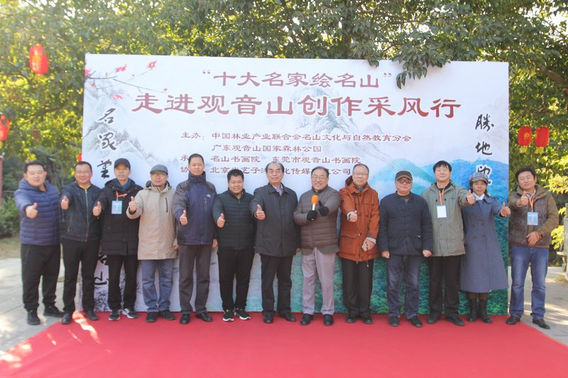見圳客戶端·深圳新聞網2020年12月28日訊 為弘揚名山文化,展現(xiàn)名山風采,近日由中國林業(yè)產業(yè)聯(lián)合會名山文化與自然教育分會和廣東觀音山國家森林公園共同主辦的“名家繪名山”系列活動在東莞樟木頭觀音山景區(qū)啟動。作為啟動儀式首站,主辦方邀請了李耀林、邵璞、孟慶剛、陳玉林、任賢義、黃棟斌、陸遷波、張延東、苗霖、李建鋒10位國內畫壇著名美術家,走進東莞觀音山采風、寫生、創(chuàng)作。活動期間,10位畫家共同創(chuàng)作了“名山十大雄天下”巨幅山水畫,并創(chuàng)作了系列采風畫作,成效頗豐。