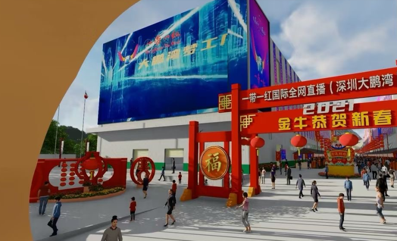 但接下來出場的農歷新年會讓人一睹牛年大牛的一幕!位于深圳大鵬新區葵涌街道的東創智能產業園,一個規模10萬平方米,集中了年貨展示與交易、網紅帶貨、文藝演出等功能的“一帶一紅夢工廠”活動,將從臘月廿日(2月1日)開始,連續不間斷地熱鬧到正月十五(2月26日)。
