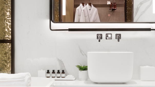 夜幕降臨,賓客可慵懶地置身浴缸之中,閉目享受由B&O音響帶來的音樂廳般沉浸式體驗。或從飄臺取過剛剛煮好的香茗,讓茶香雅韻充盈唇齒。酒店備好的浴品套裝,將讓賓客從發絲到肌膚,皆浸潤于LE LABO的香氛宇宙,奢寵體驗無與倫比。