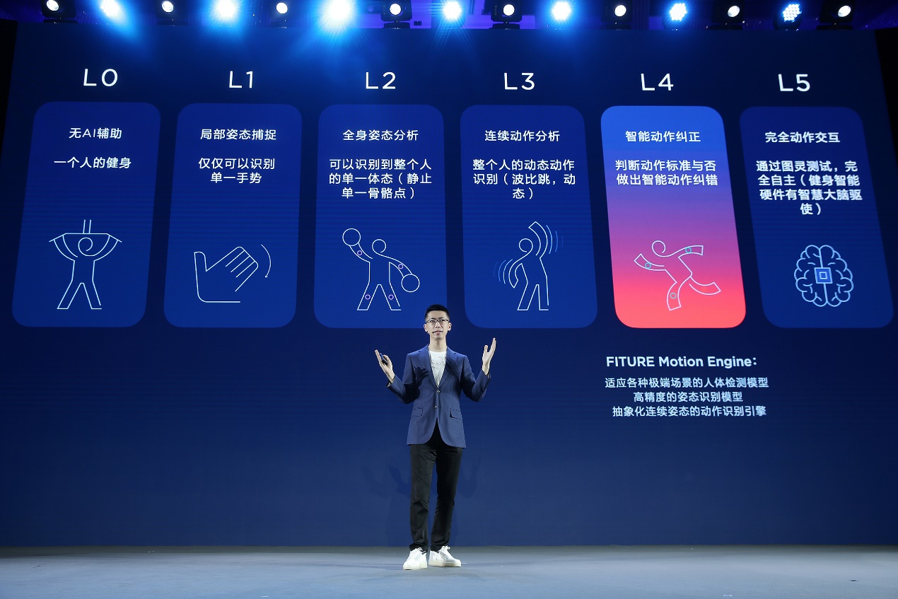 如今,FITURE作為智能健身交互式內容體驗的開創者,已經實現了自身提出的L4等級,即適應各種極端場景的人體檢測模型、具備了高精度的姿態識別模型、具備抽象化連續姿態的動作識別引擎的能力,技術實力在全球范圍內超越所有智能健身終端。