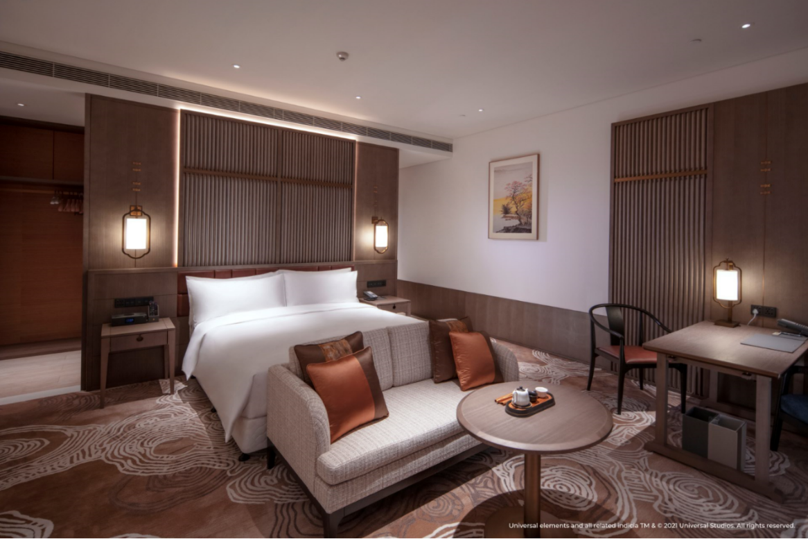 酒店設(shè)計以當代視角詮釋中國傳統(tǒng)文化及人文歷史底蘊,兼具現(xiàn)代便捷與奢華典雅。與此同時,400間寬敞雅致的客房設(shè)計也融入了中國古典皇家園林的精巧設(shè)計,以天然材料刻畫自然之美。作為品牌標志性的元素之一,所有客房均配備有煮茶套裝,賓客可以在驚險刺激的主題游園體驗之后享受輕松愉悅的茗茶時光;此外,位于酒店大堂吧的專屬茶室還將提供專業(yè)的互動品茗體驗。