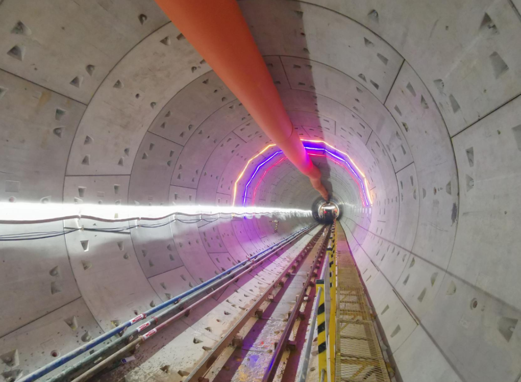 區間于2021年2月4日正式始發,跨年施工,歷時77天,兩次近距離下穿地下空間深基坑,最小凈距1.8m。區間范圍存在長度約40米范圍的上軟下硬地層,天然抗壓強度大于100Mpa,針對現場困難,項目部超前謀劃,科學組織,提前進行深孔爆破預處理,降低了施工風險,保證了盾構機順利穿越上軟下硬地段并成功抵達接收端頭。
