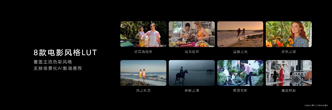 結合榮耀 AI影像技術,榮耀Magic3系列推出 AI影調推薦功能(此功能后續通過 OTA升級支持),識別場景元素,智能匹配并推薦適合風格的LUT影調,用戶也可以通過專業模式下錄制Log視頻,再通過相冊視頻剪輯功能自行添加喜歡的 LUT影調。榮耀 M agic3系列實現了電影工業視頻流程 AI化,使專業走向大眾,讓用戶隨手便可拍出電影大片,充分表達自己的情緒與審美。