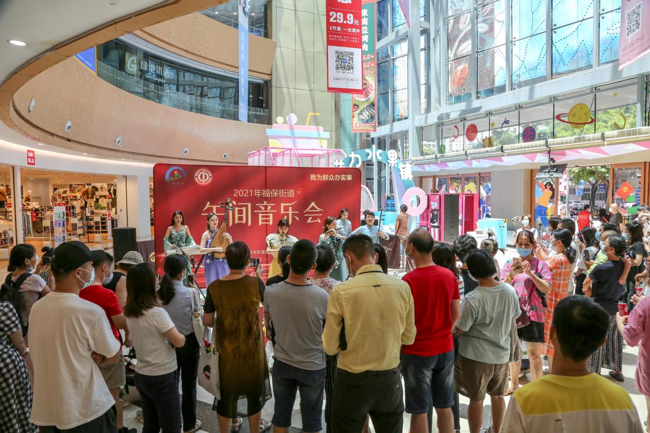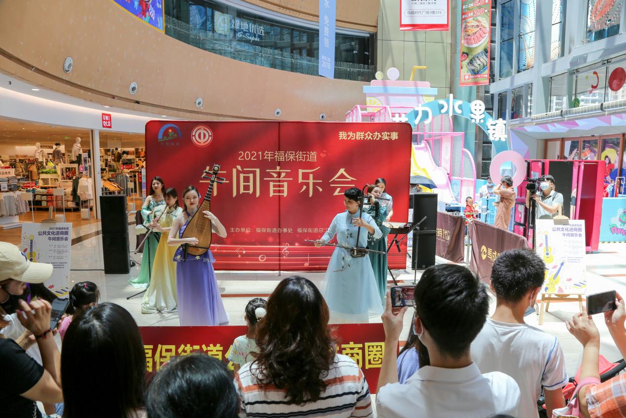 讀特客戶端·深圳新聞網2021年8月20日訊 (記者 蔡凱伊)8月20日,2021年福保街道午間音樂會在馬成時代廣場舉辦,現場獨奏與合奏齊鳴,二胡、琵琶、笛子、簫、葫蘆絲、揚琴、古箏等樂器傾情奏響,為轄區職工和前來商場購物的群眾帶來輕松美妙的音樂享受。
