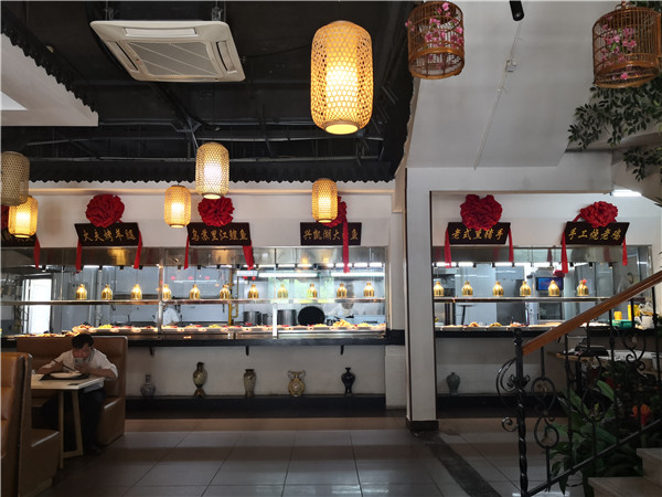 尤其扎眼的,正對大門的明廚亮灶上的幾塊牌匾,一下子就勾起人的食欲:老式熏豬手、手工燒老雞、烏蘇里江鰉魚、興凱湖大白魚、查干湖胖頭魚、火夫灶羊腿。這些都是地道的東北味啊!據介紹,老板湯長明是黑龍江“龍菜”系傳承領軍人物,祖孫四代傳承東北菜廚藝,現在關東大院餐飲集團董事長。當然,許多大家耳熟能詳的大眾菜也應有盡有,如:殺豬菜、小雞燉蘑菇、得莫利燉魚、大鵝燉寬粉、黑皮肘子、酸菜粉、地三鮮、東北鹵水點豆腐、金湯遼參、黃魚燒土豆、紅燒肉黃金勾......看得人口水直冒。加之,整個門店的布局也十分特別,一樓明廚亮灶之外,主要是大堂散座,周邊還有不少的書籍、酒架;二樓主要是包間,簡潔明亮。可以說,在此可以感受到一股濃濃的關東風情。