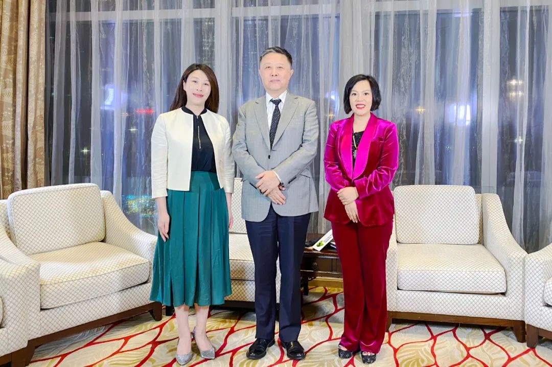 蘇州金合盛控股有限公司黨委書記、副董事長、總經理周瓊芳(左一);深圳市金融商會產業戰略顧問、深圳市共享金融研究院執行院長(中);深圳市金融商會執行會長朱雪櫻(右一)