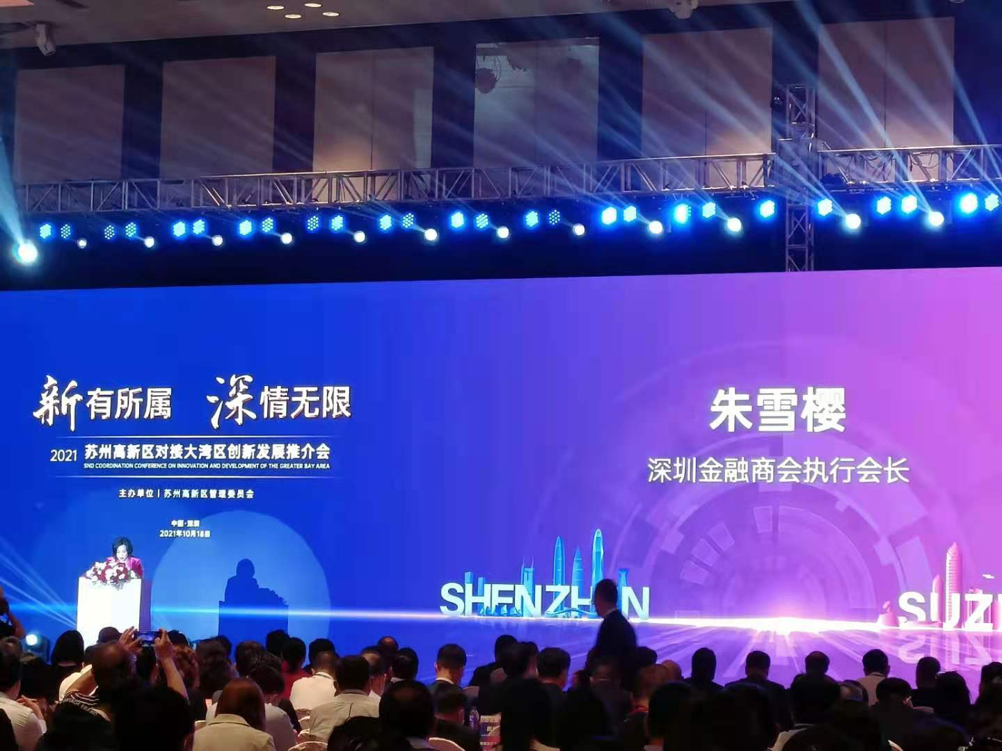 朱雪櫻生動地形容,第一,深圳市金融商會將發揮在深圳市產業創新開拓優勢,做好蘇州高新區創新金融服務的“宣傳員”,將深圳在中國做到很多“第一”的成功經驗引入蘇州,特別是金融助力產業融資的創新產品,將深圳市發行跨境地方政府專項債、南向通債券等及深圳國際公益學院、ESG投資、碳中和的人才培養的智庫平臺分享到蘇州。目前,深圳市金融商會匯聚了一大批具有廣泛影響力的經濟學家、金融家、知名學者、地方金融監管局、深交所、上交所等智囊機構和專家智庫,打造“金融領軍人才業、金融+產業培訓”,建立起金融創新與蘇州高新區的溝通橋梁。