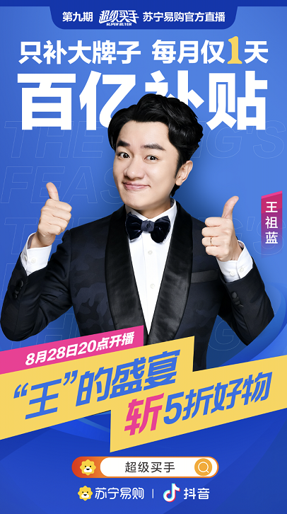 ?828王祖藍現身蘇寧易購抖音直播間,挑戰帶貨紀錄