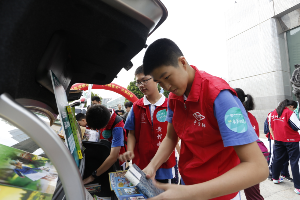 深圳市實驗學校中學部初二(1)班此次組織了三輛車參加本次車尾箱換書活動,他們帶來了300余本書,剛一擺出來,車前就圍滿了人。記者在現(xiàn)場看到,實驗學校中學部為此次車尾箱捐換書活動準備的書籍質(zhì)量非常高,種類也十分豐富,涵蓋了童話故事,文學名著,歷史,人物傳記等多個類別,其中以廣大中小學生非常喜愛的書籍為主。并在活動結束時,將帶來的300余本書全部捐獻出去。
