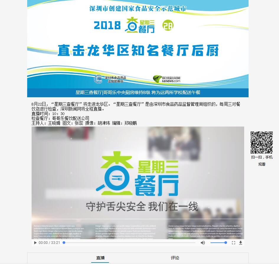 “星期三查餐廳”節(jié)目組采用深圳新聞網(wǎng)直播平臺(tái),記者使用手機(jī)或攝像機(jī)進(jìn)行拍攝,照片、直播視頻、文本內(nèi)容等回傳后方編輯,編輯在直播平臺(tái)上進(jìn)行內(nèi)容整理,將執(zhí)法行動(dòng)全程進(jìn)行視頻+圖文全程直播。網(wǎng)友無(wú)需下載任何客戶端,可通過(guò)Internet直接在PC、移動(dòng)客戶端等設(shè)備上實(shí)時(shí)觀看執(zhí)法過(guò)程,并能在線對(duì)直播內(nèi)容進(jìn)行評(píng)論。