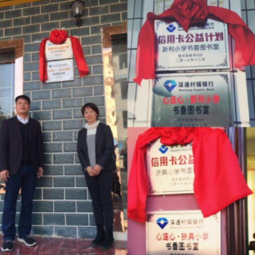 2017年,由深圳農商行發起的“信用卡公益計劃·書香圖書室”捐贈活動,深入走進廣西壯族自治區的偏遠山區,為當地較為貧困的扶典小學、新利小學、林旺小學和育才小學帶來溫暖和鼓勵。本次活動共捐贈各類圖書1899冊、文體用品130套、書包590個、書桌書架椅子42套,有效地幫助這四所小學建設充實圖書室,為孩子們創造良好的閱讀環境,讓更多孩子在閱讀中滋養向上生長的力量。