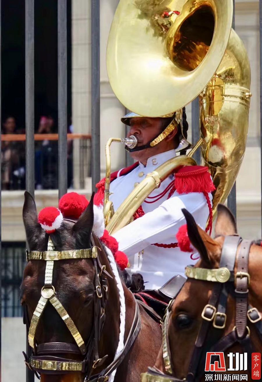 可能也與秘魯民俗有關,秘魯國家軍樂隊也會同時在利馬總統府門前廣場公開盛裝演練,市民都可以近距離觀賞。李仁奇攝