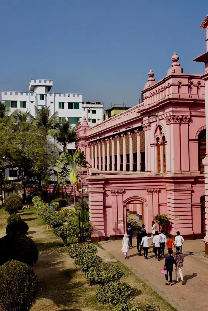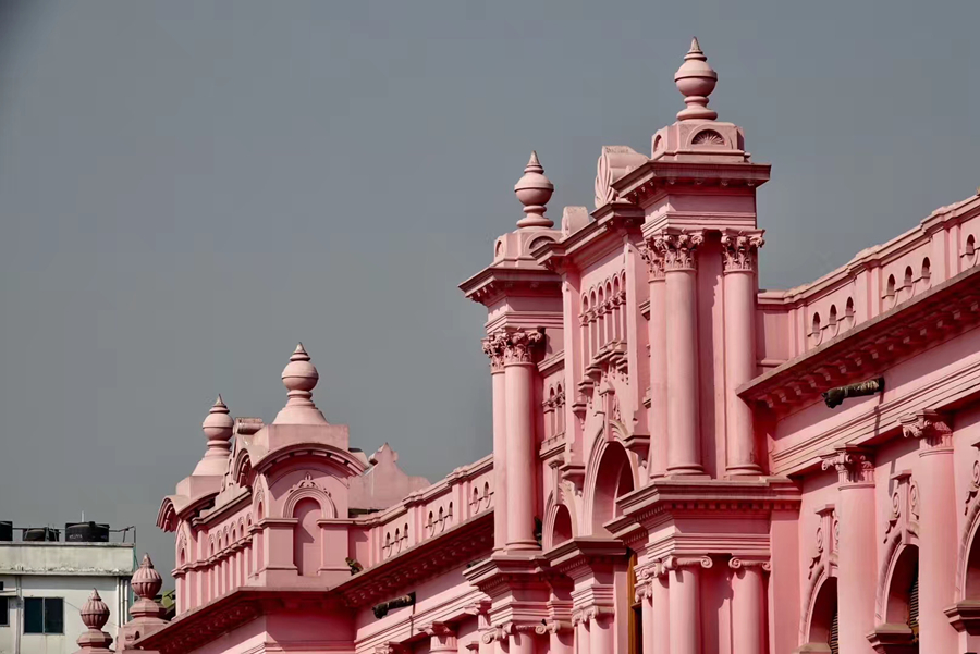 距孟加拉恒河渡口不遠的地方有一座粉紅色宮殿式的豪華建筑。那是1872年一位名叫阿赫桑曼濟勒的地主在法國人留下的倉房基礎上改建的私邸,后來曾在一次龍卷風襲擊時受創。李仁奇 攝