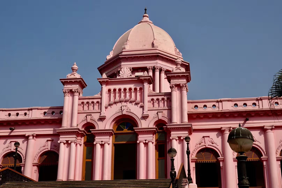 距孟加拉恒河渡口不遠的地方有一座粉紅色宮殿式的豪華建筑。那是1872年一位名叫阿赫桑曼濟勒的地主在法國人留下的倉房基礎上改建的私邸,后來曾在一次龍卷風襲擊時受創。李仁奇 攝