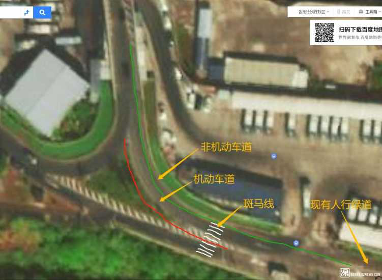 市民建議,可以從地鐵工地處新建人行道接到下坡臺階處,將盤山路西行上跨線橋車道的道路邊緣留出來作為非機動車道,并劃上斑馬線與路南邊相通。同時,考慮將跨線橋北部導流線改為非機動車道。