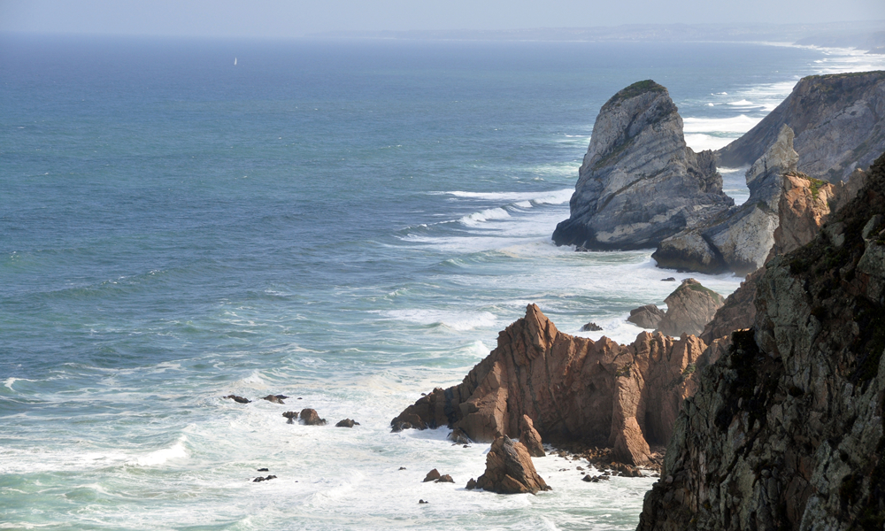 羅卡角跟別處確有不同之處。它險峻得讓人覺得站在山崖邊隨時可能被謀害,那無遮無擋的風就是最令人生疑的殺手;還有那些遠看平靜,一挨近它就激情滿懷的海浪,翡翠般碎裂,讓人聯系到“寧為玉碎”的操守。李仁奇 攝
