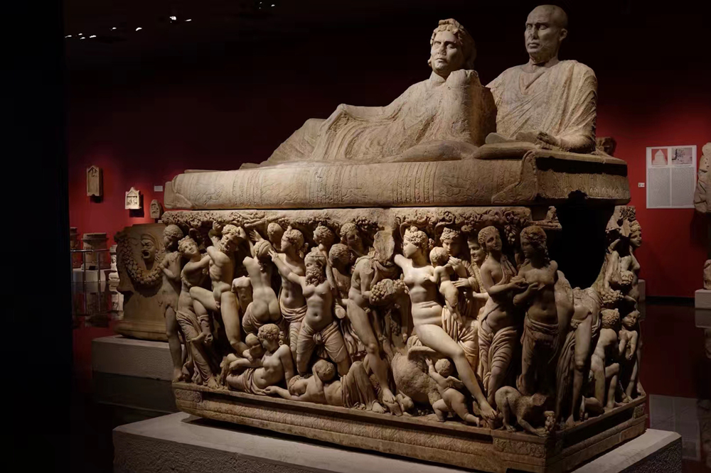 狄奧尼索斯石館。側立面是眾神狂歡圖,下方還有小愛神丘皮特。李仁奇 攝