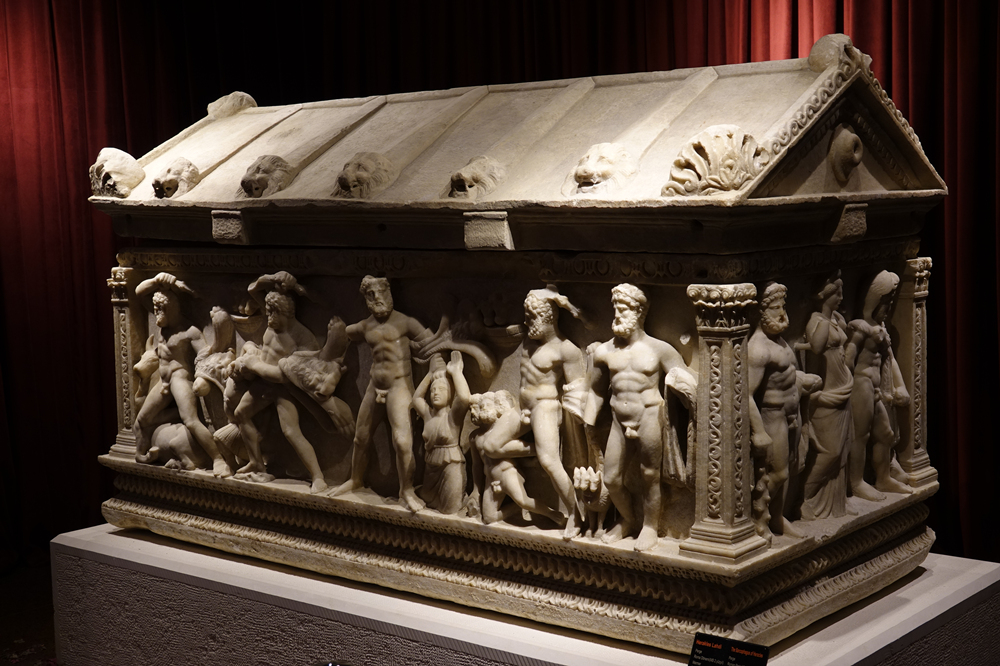 赫拉克勒斯石棺,它的側立面描繪赫拉克勒斯斬殺九頭蛇、與獅子搏斗、偷盜金蘋果等12項苦力后升為神的傳奇故事,浮雕保存完整、栩栩如生,展現了古羅馬精湛的雕塑工藝。李仁奇 攝