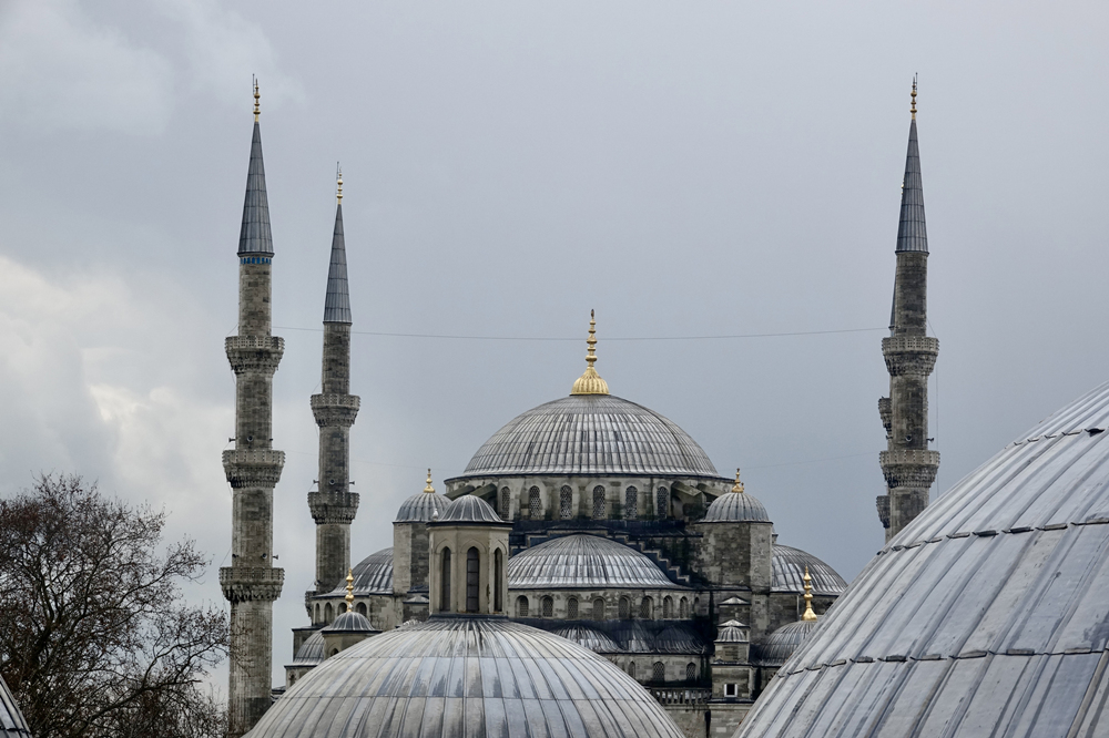 公元1453年,奧斯曼土耳其蘇丹下令將將君士坦丁堡改名為伊斯坦布爾,將索菲亞大教堂改成阿雅索菲亞清真寺,并將教堂內(nèi)所有拜占庭的壁畫全部用灰漿遮蓋住,所有基督教雕像也被搬出,還在周圍修建了4個高大的宣禮塔。李仁奇 攝
