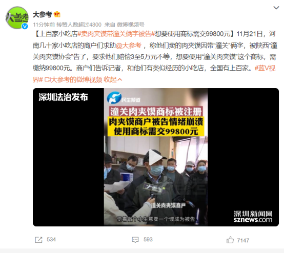 (相關報道:讓眾多店家崩潰的潼關肉夾饃商標許可費國家知識產權局回應了)