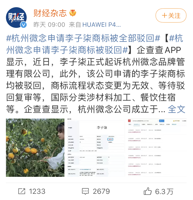李子柒起訴老東家相關媒體報道受關注。
