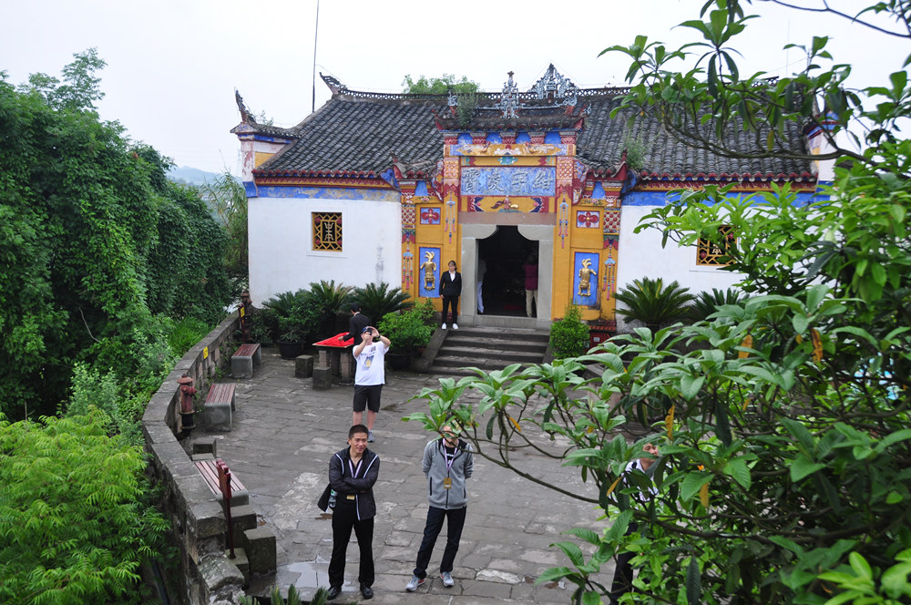 山頂有古剎天子殿,創建于康熙、乾隆年間,是此寨最高點。正殿墻壁有女媧補天故事的壁畫,畫下方,有一遺石,似石寶寨。李仁奇 攝