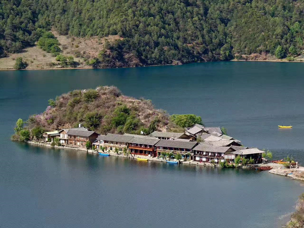 里格島是瀘沽湖內一個美麗的半島,海島三面環水,左右青山環抱,傍立格姆女神山。李仁奇 攝