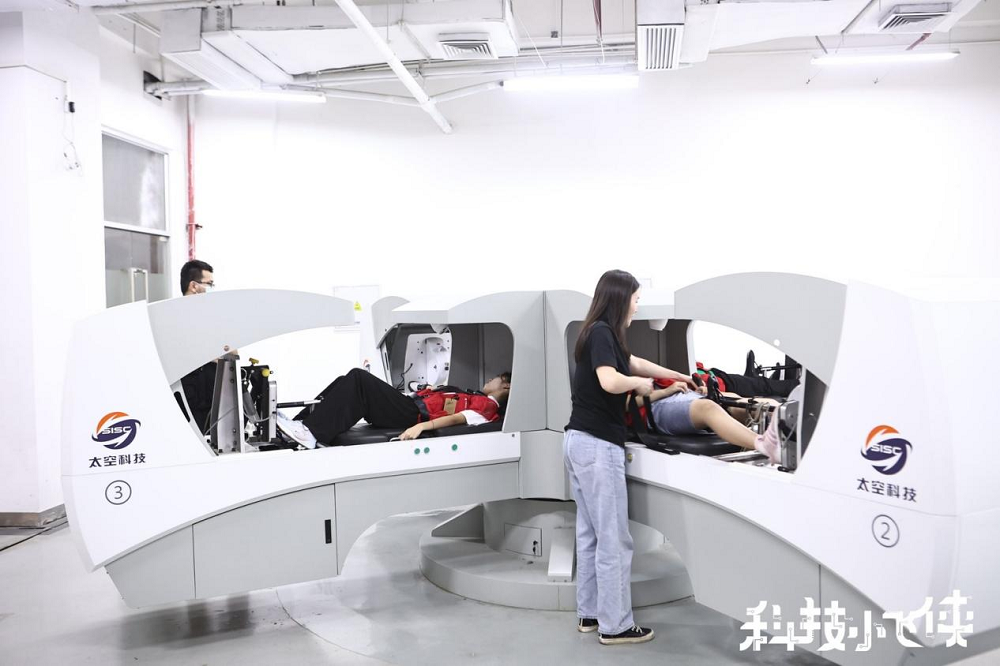除了太空廢棄物處理實驗,航天訓練體驗也得到了孩子們的認可。活動現場,短臂離心機、模擬失重床等設備模擬出了航天員的日常訓練場景,還沒等講解老師解說完,就有不少小飛俠們歡呼雀躍,迫不及待地想體驗航天員日常訓練,旋轉、漂浮,小朋友們玩得不亦樂乎,在玩樂的同時,也學習到了更多航天知識。