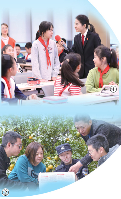 圖①:在重慶市中華路小學法治課堂上,法官與同學們互動。 尚博攝(影像中國)